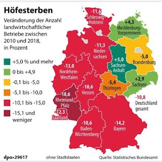 Es wird auch aus anderen Gründen immer unrentabler, in Deutschland selbst pflanzliche Nahrungsmittel zu produzieren, da inzwischen etwa 81% davon importiert und einstmals stabile bäuerliche Strukturen zum Vorteil finanzstarker weniger, nicht selten ausländischer Unternehmer, zerstört werden. Der Import ist billiger, wie z.B. der von Soja zur Produktion tierischer Lebensmittel. Pro EU-Bürger werden heute jährlich etwa 70 Kilo Soja aus Südamerika unter Umgehung des europäischen Grenzwerts für das krebserregende Glyphosat eingeführt. Der EU-Grenzwert beträgt 0.05 mg/kg, die in Brasilien erlaubte Menge beträgt 10 mg/kg. Wenn man den EU-Maßstab anlegte, dürfte man überhaupt kein Soja mehr einführen, und dann lohnte sich auch wieder der Anbau von in Europa einstmals weitverbreiteten Futterpflanzen wie Lupinen, Erbsen oder Ackerbohnen. Die Umwelt, die Bodenqualität und die Bauern würden davon profitieren.