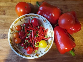 Die Ernte war recht gut, vor allem der Salat schenkte sich über viele Sommerwochen hinweg immer wieder neu. Die Paprika wuchsen gut bis in den Frühherbst hinein, dann war ihr Bedarf an Sonnenlicht größer als dessen Verfügbarkeit. Den Tomaten war der Sommer entschieden zu nass und die 8 kg Sauerkirschen reichten nicht an die vorjährige pralle Ernte von fast 20 kg heran. Dennoch sorgten die Sauerkirschen für viele Kuchen, viel Marmelade und Kompott und nicht zuletzt für ein ordentliches Maß an Wein.