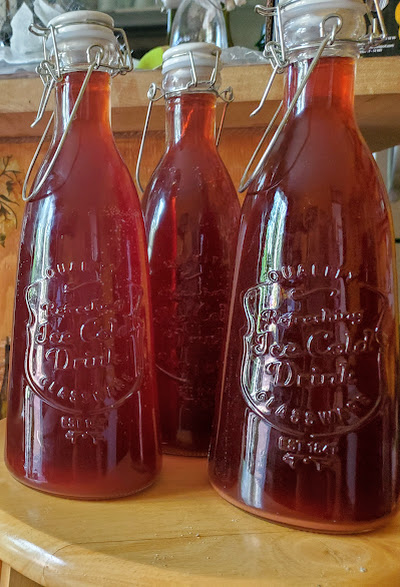 Die reichliche Beerenernte mündete in die Herstellung von vielen Flaschen köstlichsten Likörs: aus schwarzen Johannisbeern und Stachelbeeren, aus roten Johannisbeeren, aus Himbeeren. Dieser Vorrat wird sicher nicht nur diesen Winter für wohlige innere Wärme sorgen.