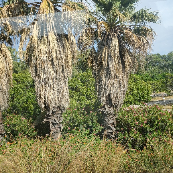 Während der etwa einstündigen Fahrt durch zähflüssigen Berufsverkehr zum Hotel eröffete sich dem staunenden Auge auch viel Schönes, vor allem die prächtigen und in mannigfachen Schattierungen vorkommenden Oleanderbüsche an Straßenrändern, über Gartenmauern hängend, im Feld stehend, die vielen dicken Palmen dazwischen, deren unteres Drittel jedoch eher verdorrt aussah, rundflächig verzweigte Kakteen, Agaven, und immer wieder der Panoramablick von der Uferstraße hinunter aufs Meer, das zu diesem Zeitpunkt blaugrau und ruhig dalag. Das Ufer bestand aus arg zerklüftetem, schwarzem Lavagestein.